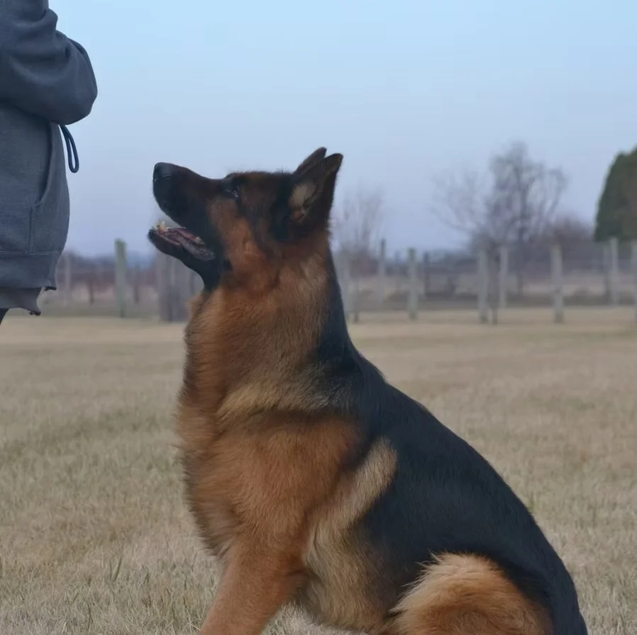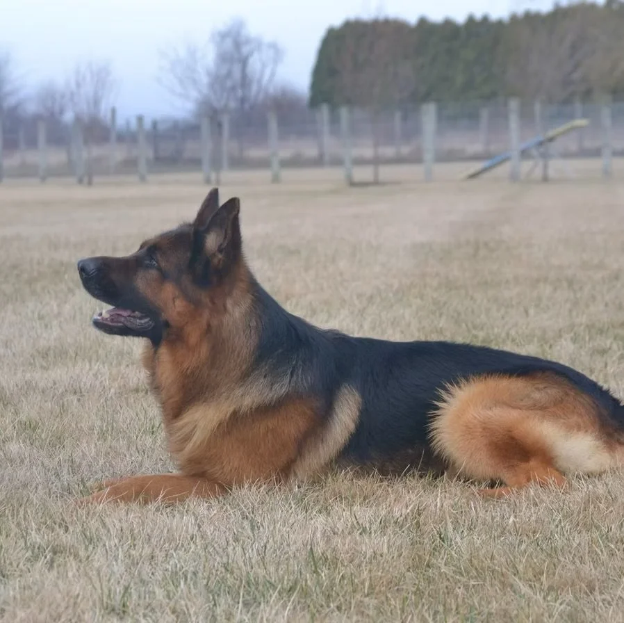 From his fluid movement and rich pigmentation to his alert, focused expression, Rez represents the pinnacle of German Shepherd breeding. Beyond his looks, what sets him apart is his character, loyal, affectionate, and eager to please, with a clear-headed temperament that adapts effortlessly to both work and relaxation.